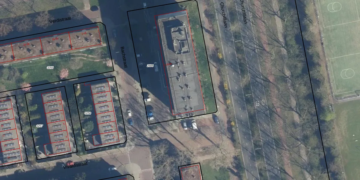 Het perceel waarop Bachstraat 116 staat heeft een oppervlakte van 2486 m². Dit is een zeer groot perceel. De perceeloppervlakte wordt geregistreerd door het Kadaster. Gedetailleerde informatie over de maten van dit perceel kunt u vinden in het rapport Kadastrale kaart met maatvoering van Bachstraat 116.