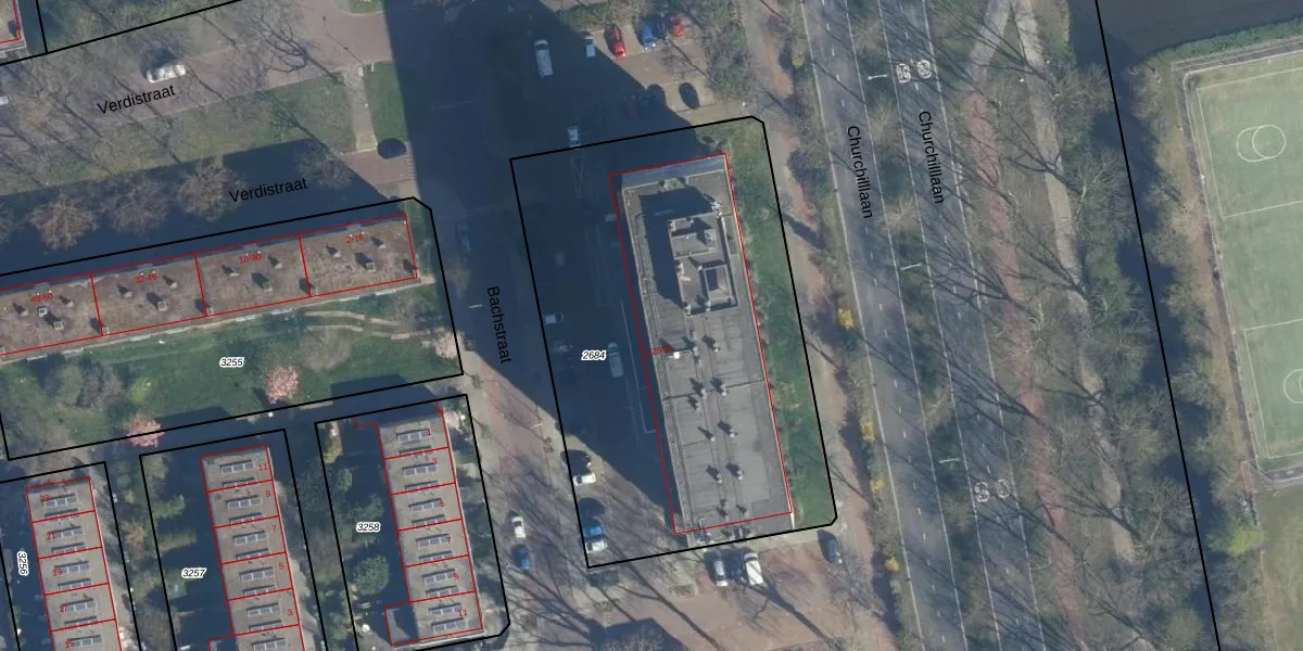 Het perceel waarop Bachstraat 12 staat heeft een oppervlakte van 2486 m². Dit is een zeer groot perceel. De perceeloppervlakte wordt geregistreerd door het Kadaster. Gedetailleerde informatie over de maten van dit perceel kunt u vinden in het rapport Kadastrale kaart met maatvoering van Bachstraat 12.