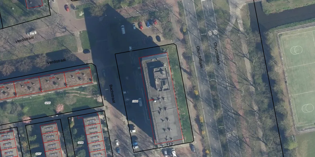Het perceel waarop Bachstraat 150 staat heeft een oppervlakte van 2486 m². Dit is een zeer groot perceel. De perceeloppervlakte wordt geregistreerd door het Kadaster. Gedetailleerde informatie over de maten van dit perceel kunt u vinden in het rapport Kadastrale kaart met maatvoering van Bachstraat 150.