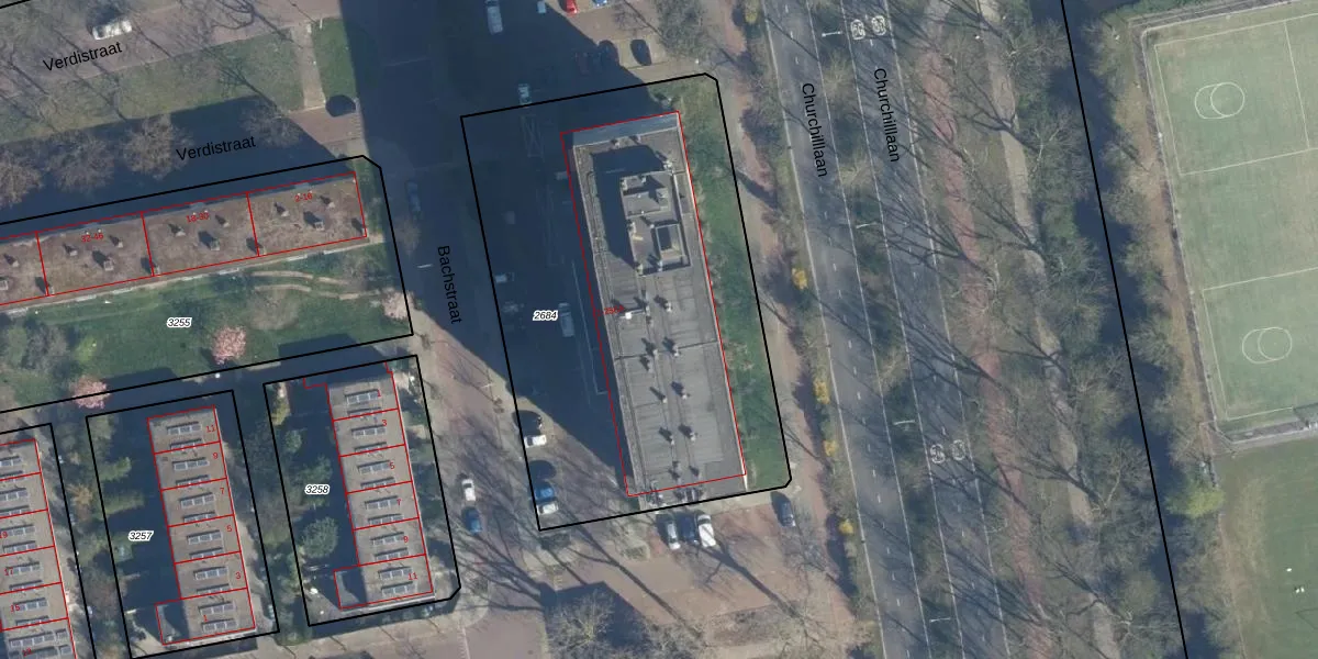 Het perceel waarop Bachstraat 154 staat heeft een oppervlakte van 2486 m². Dit is een zeer groot perceel. De perceeloppervlakte wordt geregistreerd door het Kadaster. Gedetailleerde informatie over de maten van dit perceel kunt u vinden in het rapport Kadastrale kaart met maatvoering van Bachstraat 154.