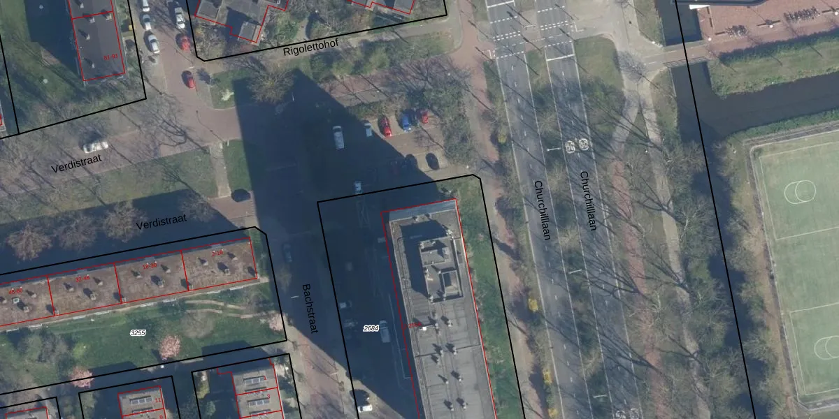 Het perceel waarop Bachstraat 160 staat heeft een oppervlakte van 2486 m². Dit is een zeer groot perceel. De perceeloppervlakte wordt geregistreerd door het Kadaster. Gedetailleerde informatie over de maten van dit perceel kunt u vinden in het rapport Kadastrale kaart met maatvoering van Bachstraat 160.