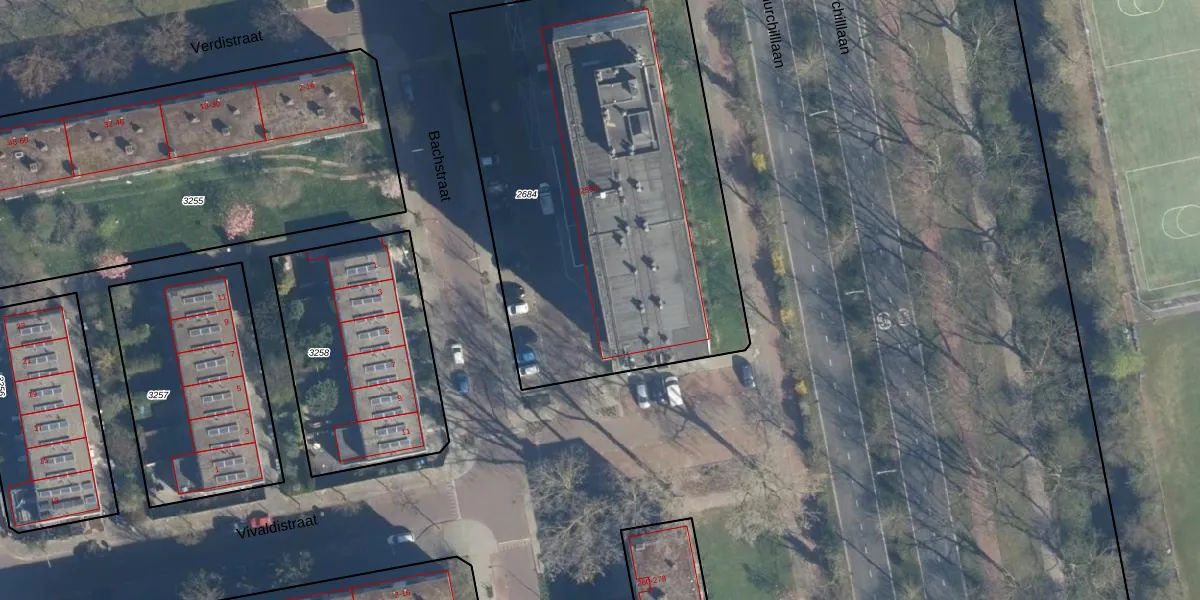 Het perceel waarop Bachstraat 18 staat heeft een oppervlakte van 2486 m². Dit is een zeer groot perceel. De perceeloppervlakte wordt geregistreerd door het Kadaster. Gedetailleerde informatie over de maten van dit perceel kunt u vinden in het rapport Kadastrale kaart met maatvoering van Bachstraat 18.