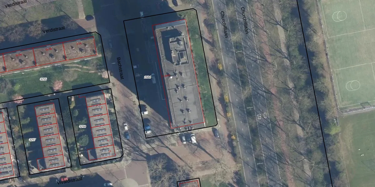 Het perceel waarop Bachstraat 212 staat heeft een oppervlakte van 2486 m². Dit is een zeer groot perceel. De perceeloppervlakte wordt geregistreerd door het Kadaster. Gedetailleerde informatie over de maten van dit perceel kunt u vinden in het rapport Kadastrale kaart met maatvoering van Bachstraat 212.