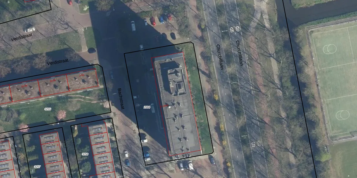 Het perceel waarop Bachstraat 222 staat heeft een oppervlakte van 2486 m². Dit is een zeer groot perceel. De perceeloppervlakte wordt geregistreerd door het Kadaster. Gedetailleerde informatie over de maten van dit perceel kunt u vinden in het rapport Kadastrale kaart met maatvoering van Bachstraat 222.