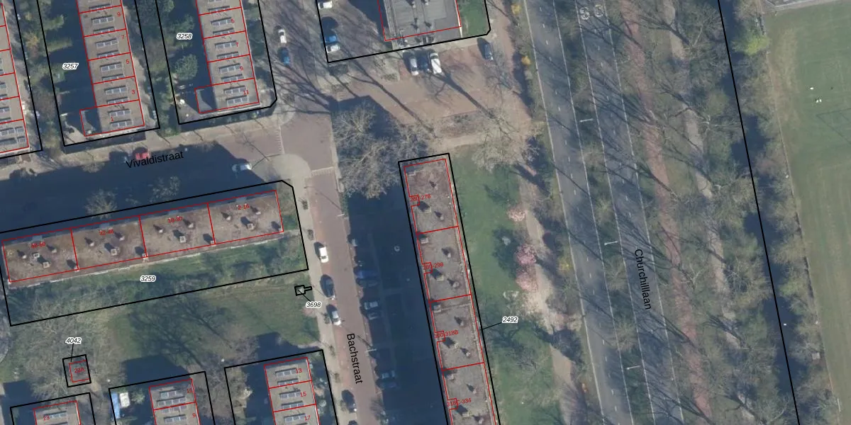 Het perceel waarop Bachstraat 268 staat heeft een oppervlakte van 1576 m². Dit is een zeer groot perceel. De perceeloppervlakte wordt geregistreerd door het Kadaster. Gedetailleerde informatie over de maten van dit perceel kunt u vinden in het rapport Kadastrale kaart met maatvoering van Bachstraat 268.
