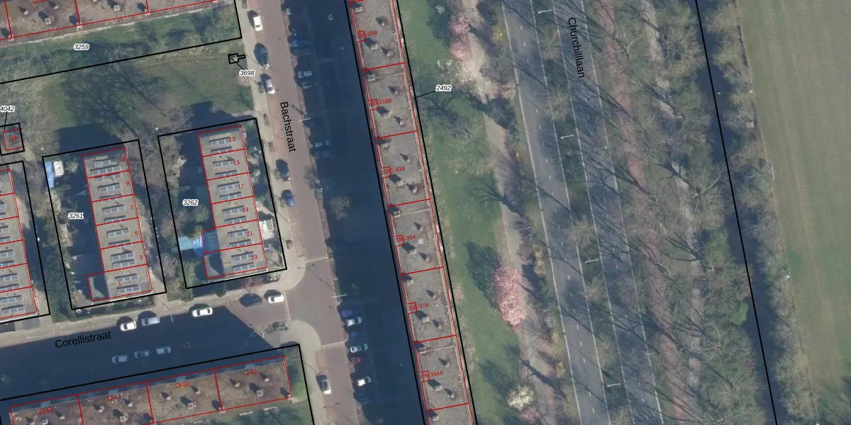 Het perceel waarop Bachstraat 342 staat heeft een oppervlakte van 1576 m². Dit is een zeer groot perceel. De perceeloppervlakte wordt geregistreerd door het Kadaster. Gedetailleerde informatie over de maten van dit perceel kunt u vinden in het rapport Kadastrale kaart met maatvoering van Bachstraat 342.