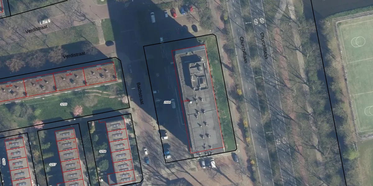 Het perceel waarop Bachstraat 40 staat heeft een oppervlakte van 2486 m². Dit is een zeer groot perceel. De perceeloppervlakte wordt geregistreerd door het Kadaster. Gedetailleerde informatie over de maten van dit perceel kunt u vinden in het rapport Kadastrale kaart met maatvoering van Bachstraat 40.