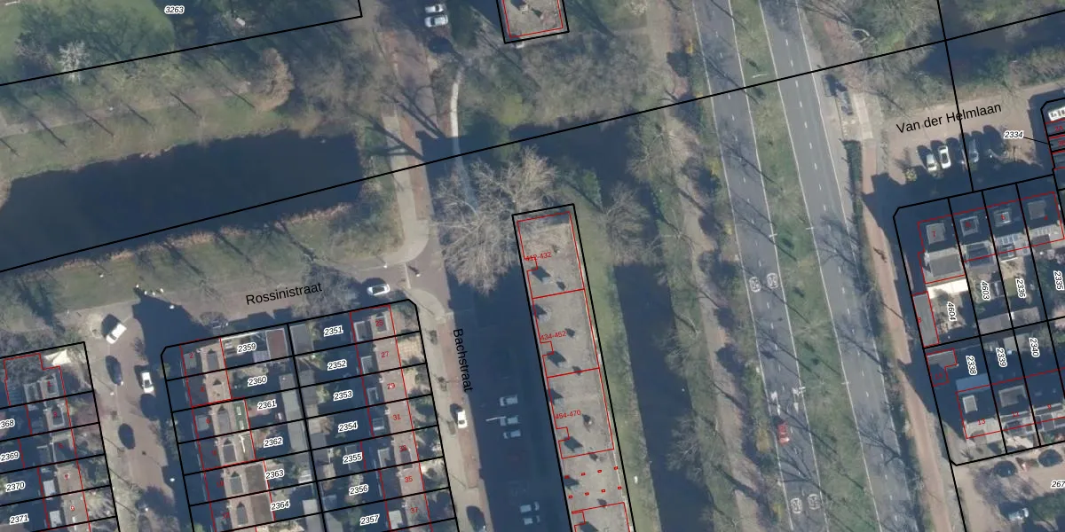 Het perceel waarop Bachstraat 430 staat heeft een oppervlakte van 1576 m². Dit is een zeer groot perceel. De perceeloppervlakte wordt geregistreerd door het Kadaster. Gedetailleerde informatie over de maten van dit perceel kunt u vinden in het rapport Kadastrale kaart met maatvoering van Bachstraat 430.