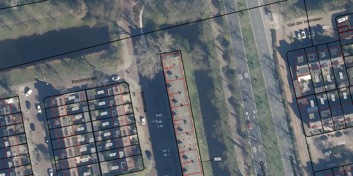 Bachstraat 438 is gelegen op kadastraal perceel LDN01O2493. Deze kadastrale aanduiding is uniek en wordt gebruikt door het Kadaster om eigendomsrechten en andere zakelijke rechten vast te leggen. Het perceel maakt onderdeel uit van de kadastrale gemeente Leiden.