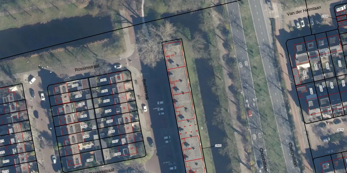 Bachstraat 452 is gelegen op kadastraal perceel LDN01O2493. Deze kadastrale aanduiding is uniek en wordt gebruikt door het Kadaster om eigendomsrechten en andere zakelijke rechten vast te leggen. Het perceel maakt onderdeel uit van de kadastrale gemeente Leiden.