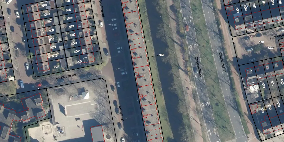 Bachstraat 490 is gelegen op kadastraal perceel LDN01O2493. Deze kadastrale aanduiding is uniek en wordt gebruikt door het Kadaster om eigendomsrechten en andere zakelijke rechten vast te leggen. Het perceel maakt onderdeel uit van de kadastrale gemeente Leiden.