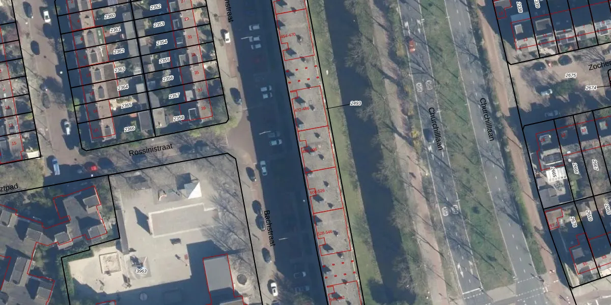 Bachstraat 504 is gelegen op kadastraal perceel LDN01O2493. Deze kadastrale aanduiding is uniek en wordt gebruikt door het Kadaster om eigendomsrechten en andere zakelijke rechten vast te leggen. Het perceel maakt onderdeel uit van de kadastrale gemeente Leiden.