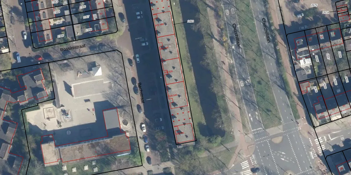 Bachstraat 532 is gelegen op kadastraal perceel LDN01O2493. Deze kadastrale aanduiding is uniek en wordt gebruikt door het Kadaster om eigendomsrechten en andere zakelijke rechten vast te leggen. Het perceel maakt onderdeel uit van de kadastrale gemeente Leiden.