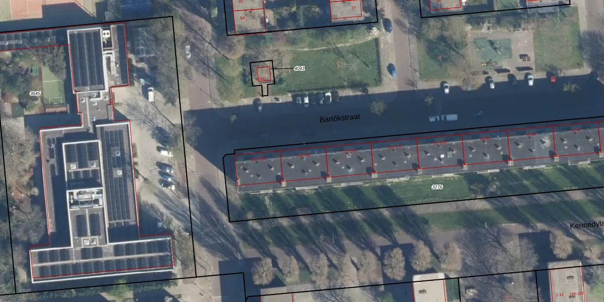 Het perceel waarop Bartókstraat 152 staat heeft een oppervlakte van 3260 m². Dit is een zeer groot perceel. De perceeloppervlakte wordt geregistreerd door het Kadaster. Gedetailleerde informatie over de maten van dit perceel kunt u vinden in het rapport Kadastrale kaart met maatvoering van Bartókstraat 152.