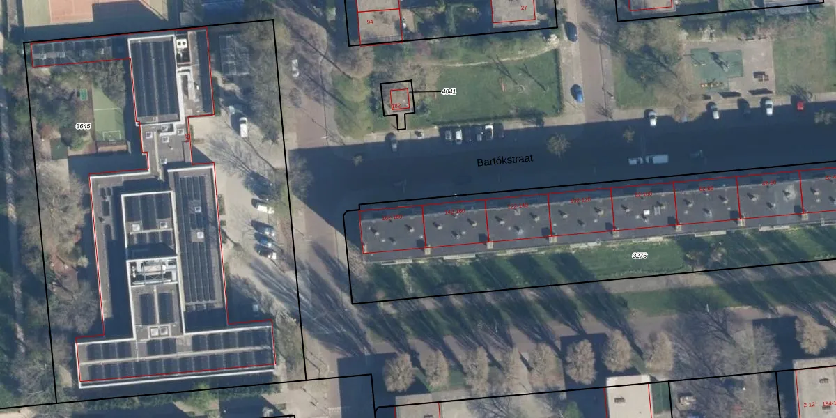 Het perceel waarop Bartókstraat 162 staat heeft een oppervlakte van 3260 m². Dit is een zeer groot perceel. De perceeloppervlakte wordt geregistreerd door het Kadaster. Gedetailleerde informatie over de maten van dit perceel kunt u vinden in het rapport Kadastrale kaart met maatvoering van Bartókstraat 162.