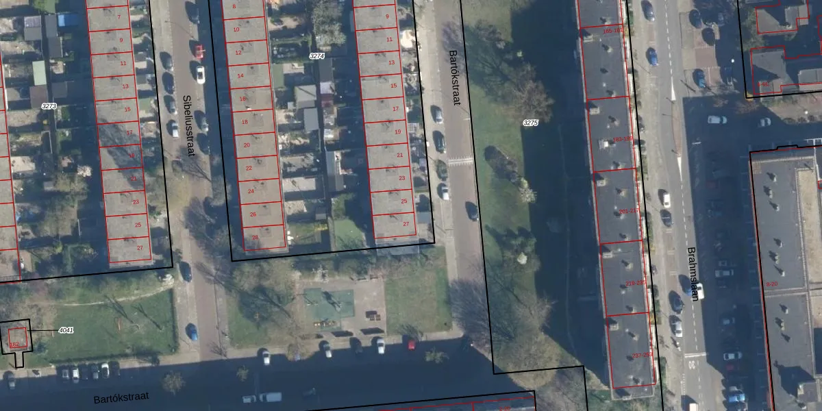 Bartókstraat 25 is gelegen op kadastraal perceel LDN01O3274. Deze kadastrale aanduiding is uniek en wordt gebruikt door het Kadaster om eigendomsrechten en andere zakelijke rechten vast te leggen. Het perceel maakt onderdeel uit van de kadastrale gemeente Leiden.