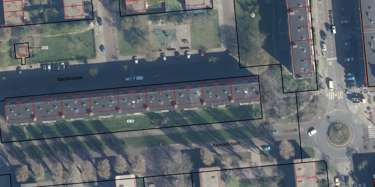 Het perceel waarop Bartókstraat 56 staat heeft een oppervlakte van 3260 m². Dit is een zeer groot perceel. De perceeloppervlakte wordt geregistreerd door het Kadaster. Gedetailleerde informatie over de maten van dit perceel kunt u vinden in het rapport Kadastrale kaart met maatvoering van Bartókstraat 56.