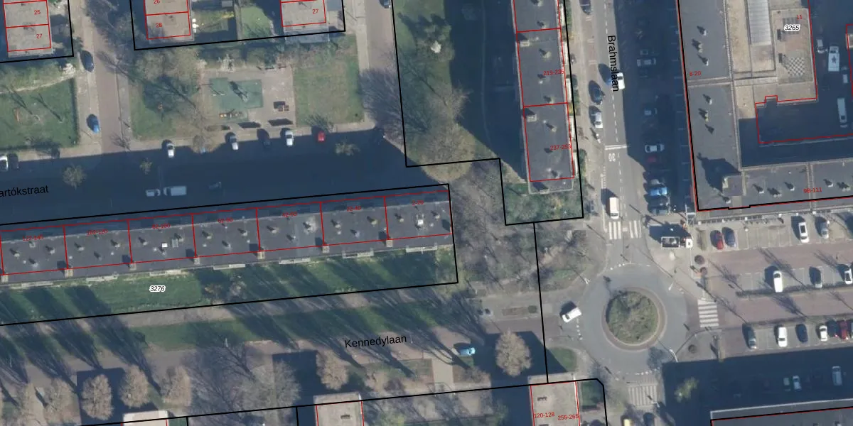 Het perceel waarop Bartókstraat 8 staat heeft een oppervlakte van 3260 m². Dit is een zeer groot perceel. De perceeloppervlakte wordt geregistreerd door het Kadaster. Gedetailleerde informatie over de maten van dit perceel kunt u vinden in het rapport Kadastrale kaart met maatvoering van Bartókstraat 8.