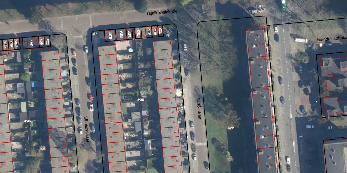 Bartókstraat 9 is gelegen op kadastraal perceel LDN01O3274. Deze kadastrale aanduiding is uniek en wordt gebruikt door het Kadaster om eigendomsrechten en andere zakelijke rechten vast te leggen. Het perceel maakt onderdeel uit van de kadastrale gemeente Leiden.