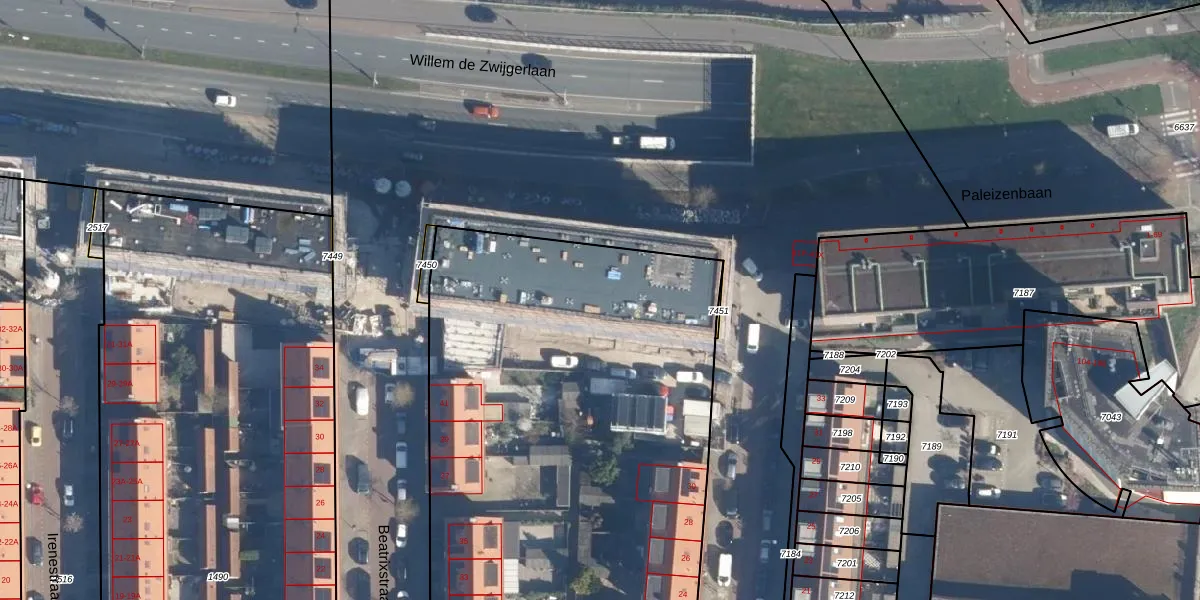 Beatrixstraat 113 is gelegen op kadastraal perceel LDN01K5087. Deze kadastrale aanduiding is uniek en wordt gebruikt door het Kadaster om eigendomsrechten en andere zakelijke rechten vast te leggen. Het perceel maakt onderdeel uit van de kadastrale gemeente Leiden.