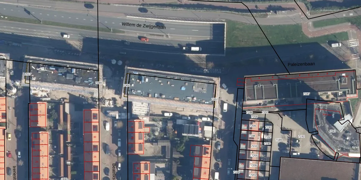 Het perceel waarop Beatrixstraat 83 staat heeft een oppervlakte van 5675 m². Dit is een zeer groot perceel. De perceeloppervlakte wordt geregistreerd door het Kadaster. Gedetailleerde informatie over de maten van dit perceel kunt u vinden in het rapport Kadastrale kaart met maatvoering van Beatrixstraat 83.