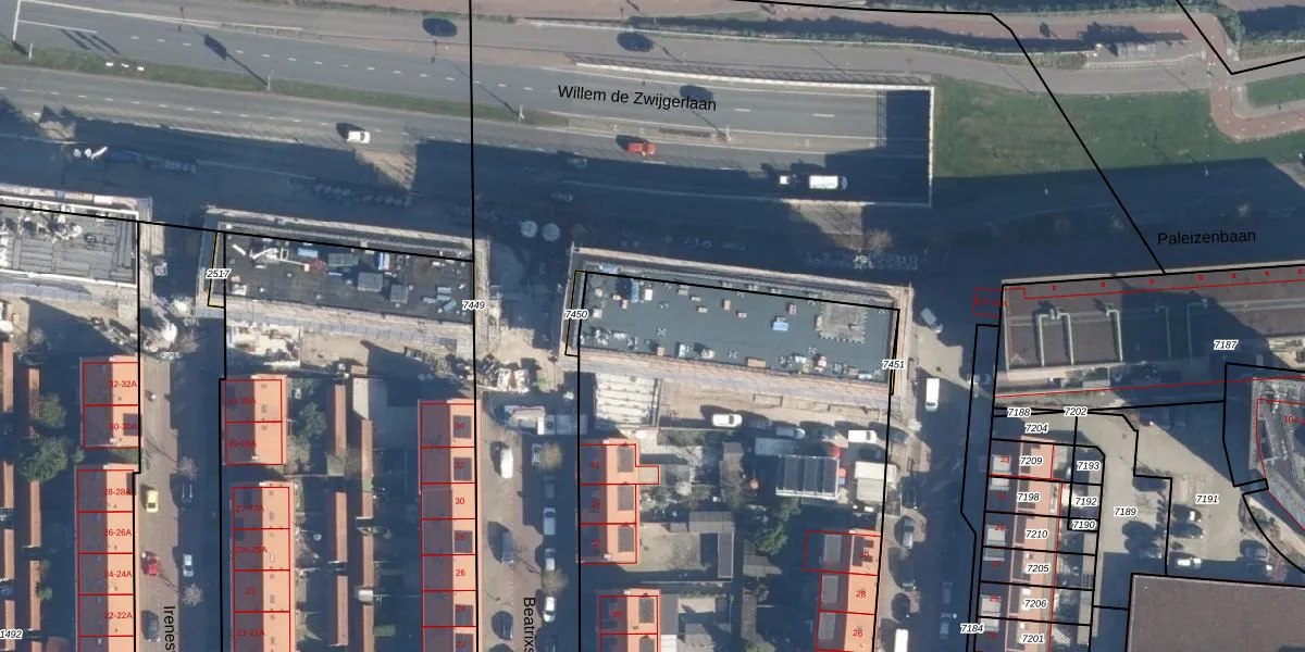 Het perceel waarop Beatrixstraat 93 staat heeft een oppervlakte van 5675 m². Dit is een zeer groot perceel. De perceeloppervlakte wordt geregistreerd door het Kadaster. Gedetailleerde informatie over de maten van dit perceel kunt u vinden in het rapport Kadastrale kaart met maatvoering van Beatrixstraat 93.