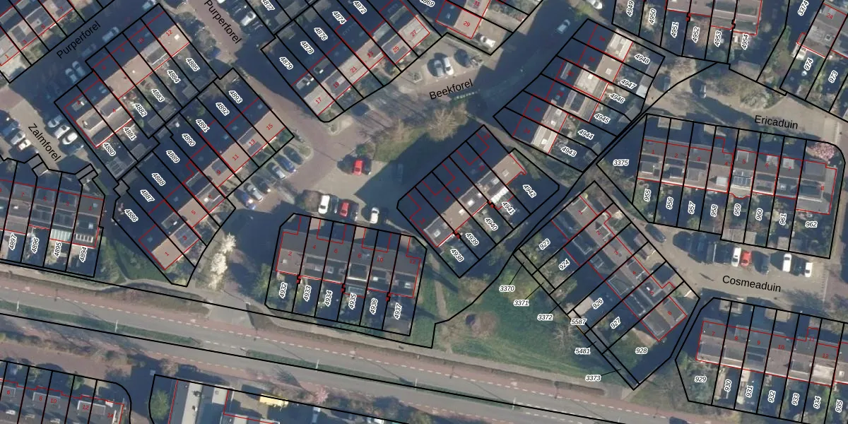 Beekforel 14 is gelegen op kadastraal perceel LDN01S4938. Deze kadastrale aanduiding is uniek en wordt gebruikt door het Kadaster om eigendomsrechten en andere zakelijke rechten vast te leggen. Het perceel maakt onderdeel uit van de kadastrale gemeente Leiden.