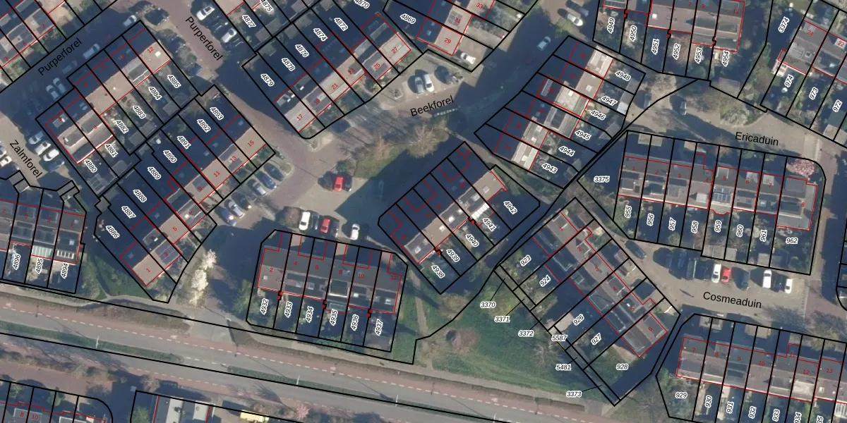 Beekforel 16 is gelegen op kadastraal perceel LDN01S4939. Deze kadastrale aanduiding is uniek en wordt gebruikt door het Kadaster om eigendomsrechten en andere zakelijke rechten vast te leggen. Het perceel maakt onderdeel uit van de kadastrale gemeente Leiden.
