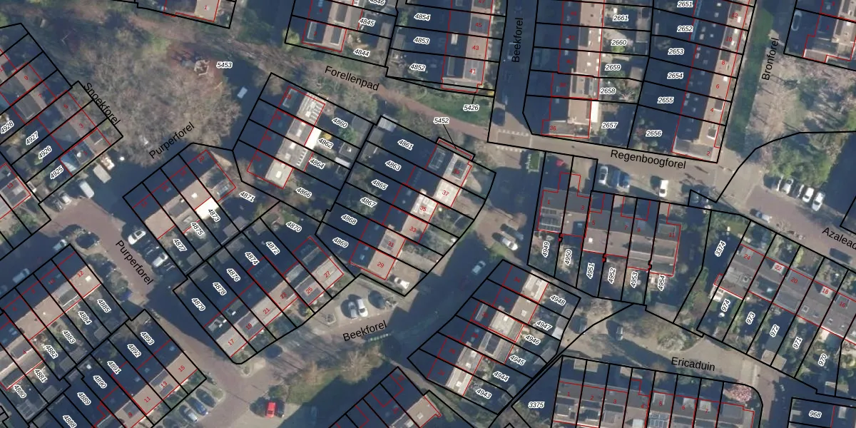 Beekforel 35 is gelegen op kadastraal perceel LDN01S4865. Deze kadastrale aanduiding is uniek en wordt gebruikt door het Kadaster om eigendomsrechten en andere zakelijke rechten vast te leggen. Het perceel maakt onderdeel uit van de kadastrale gemeente Leiden.