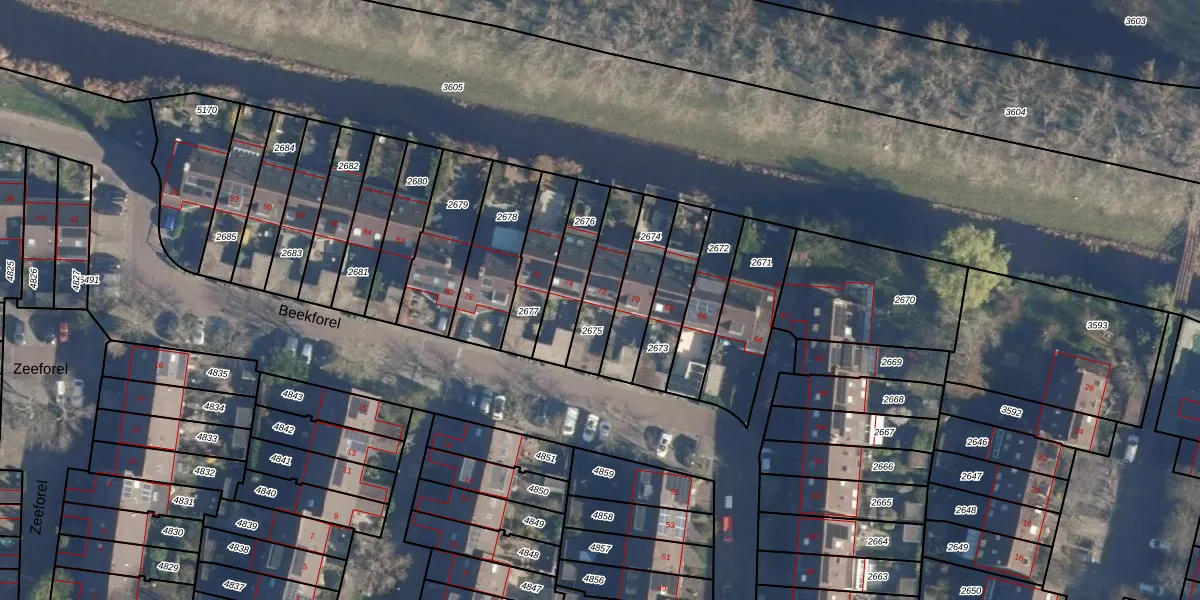 Gebruik de zoekbalk of klik op een perceel voor informatie over de adressen binnen dit perceel.