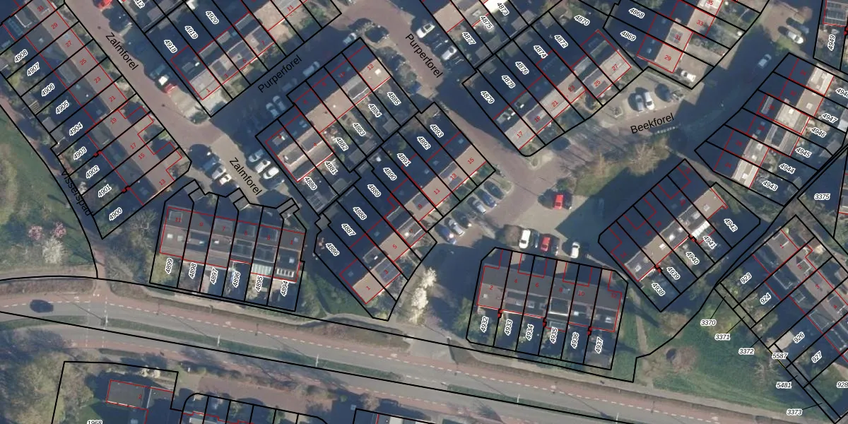 Beekforel 9 is gelegen op kadastraal perceel LDN01S4890. Deze kadastrale aanduiding is uniek en wordt gebruikt door het Kadaster om eigendomsrechten en andere zakelijke rechten vast te leggen. Het perceel maakt onderdeel uit van de kadastrale gemeente Leiden.