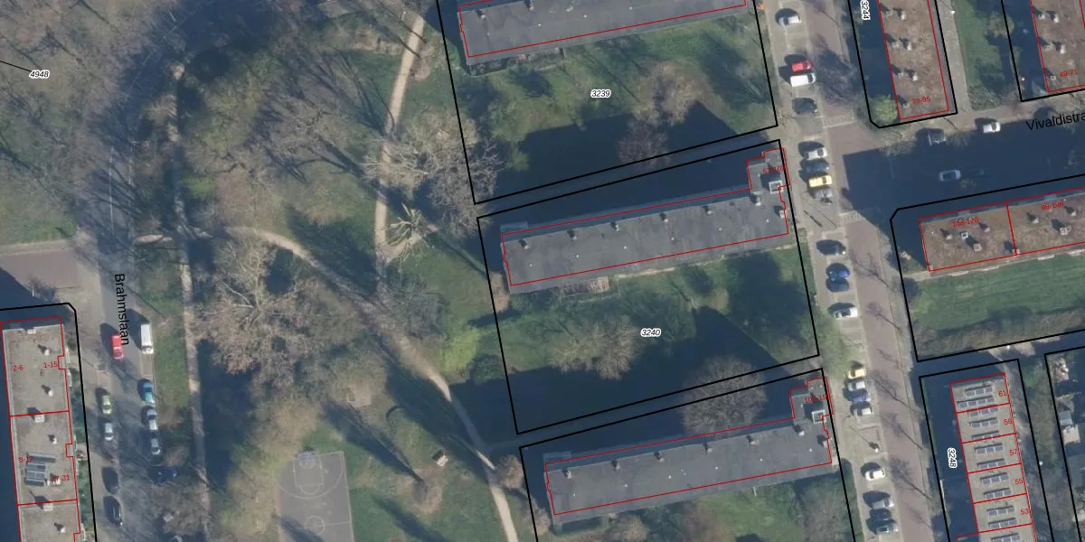 Het perceel waarop het adres ligt is LDN01-O-3240. De afkorting 'LDN01' staat voor kadastrale gemeente Leiden. De gemiddelde perceeloppervlakte in de kadastrale gemeente Leiden is 703,94 m². Dit perceel is met zijn 2330 m² dus groter dan gemiddeld. De grootste perceeloppervlakte in de kadastrale gemeente is 51,8 ha. De kleinste oppervlakte bedraagt 0 m². Er zijn 26 adressen aanwezig op het perceel. In de Basisregistratie Kadaster (BRK) werden de grenzen van het perceel geregistreerd op 07-12-2007.
