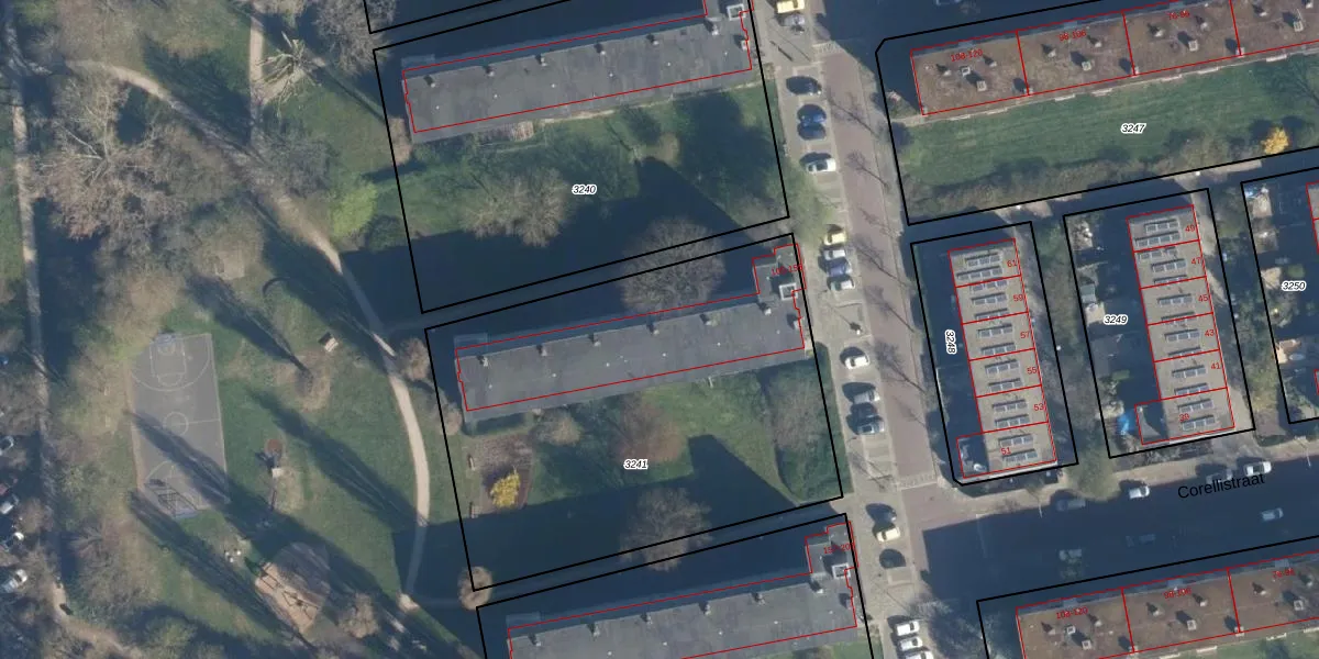 Het perceel waarop het adres ligt is LDN01-O-3241. De afkorting 'LDN01' staat voor kadastrale gemeente Leiden. De gemiddelde perceeloppervlakte in de kadastrale gemeente Leiden is 703,94 m². Dit perceel is met zijn 2325 m² dus groter dan gemiddeld. De grootste perceeloppervlakte in de kadastrale gemeente is 51,8 ha. De kleinste oppervlakte bedraagt 0 m². Er zijn 26 adressen aanwezig op het perceel. De laatste wijziging in het de Basisregistratie Kadaster (BRK) was op 07-12-2007.