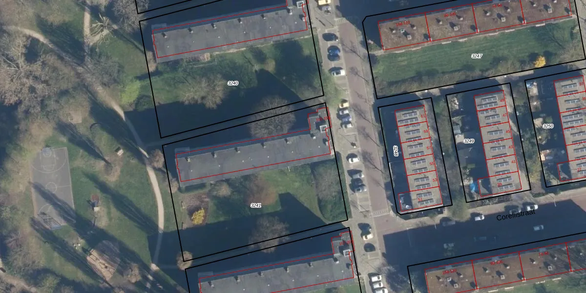 Het perceel waarop het adres ligt is LDN01-O-3241. De afkorting 'LDN01' staat voor kadastrale gemeente Leiden. De gemiddelde perceeloppervlakte in de kadastrale gemeente Leiden is 703,94 m². Dit perceel is met zijn 2325 m² dus groter dan gemiddeld. De grootste perceeloppervlakte in de kadastrale gemeente is 51,8 ha. De kleinste oppervlakte bedraagt 0 m². Op het perceel zijn 26 adressen aanwezig. De huidige grenzen van het perceel zijn digitaal in de Basisregistratie Kadaster (BRK) geregistreerd op 07-12-2007.
