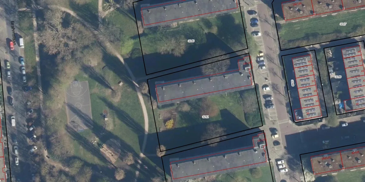Het perceel waarop het adres ligt is LDN01-O-3241. De afkorting 'LDN01' staat voor kadastrale gemeente Leiden. De gemiddelde perceeloppervlakte in de kadastrale gemeente Leiden is 703,94 m². Dit perceel is met zijn 2325 m² dus groter dan gemiddeld. De grootste perceeloppervlakte in de kadastrale gemeente is 51,8 ha. De kleinste oppervlakte bedraagt 0 m². Op het perceel zijn 26 adressen aanwezig. De huidige grenzen van het perceel zijn digitaal in de Basisregistratie Kadaster (BRK) geregistreerd op 07-12-2007.