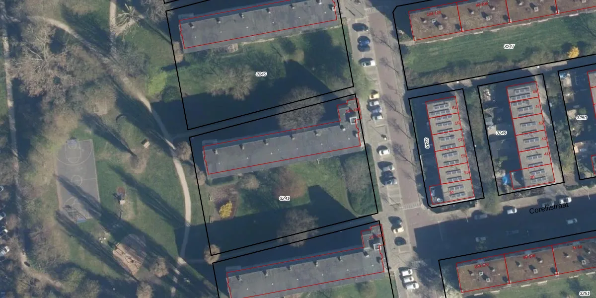 Het perceel waarop het adres ligt is LDN01-O-3241. De afkorting 'LDN01' staat voor kadastrale gemeente Leiden. De gemiddelde perceeloppervlakte in de kadastrale gemeente Leiden is 703,94 m². Dit perceel is met zijn 2325 m² dus groter dan gemiddeld. De grootste perceeloppervlakte in de kadastrale gemeente is 51,8 ha. De kleinste oppervlakte bedraagt 0 m². Op het perceel zijn 26 adressen aanwezig. De laatste wijziging in het de Basisregistratie Kadaster (BRK) was op 07-12-2007.