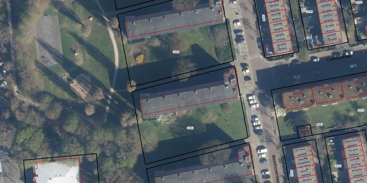 Beethovenlaan 167 is gelegen op kadastraal perceel LDN01O3242. Deze kadastrale aanduiding is uniek en wordt gebruikt door het Kadaster om eigendomsrechten en andere zakelijke rechten vast te leggen. Het perceel maakt onderdeel uit van de kadastrale gemeente Leiden.