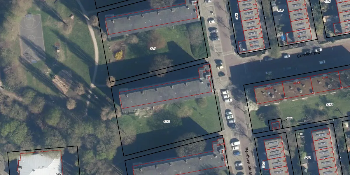 Beethovenlaan 177 is gelegen op kadastraal perceel LDN01O3242. Deze kadastrale aanduiding is uniek en wordt gebruikt door het Kadaster om eigendomsrechten en andere zakelijke rechten vast te leggen. Het perceel maakt onderdeel uit van de kadastrale gemeente Leiden.