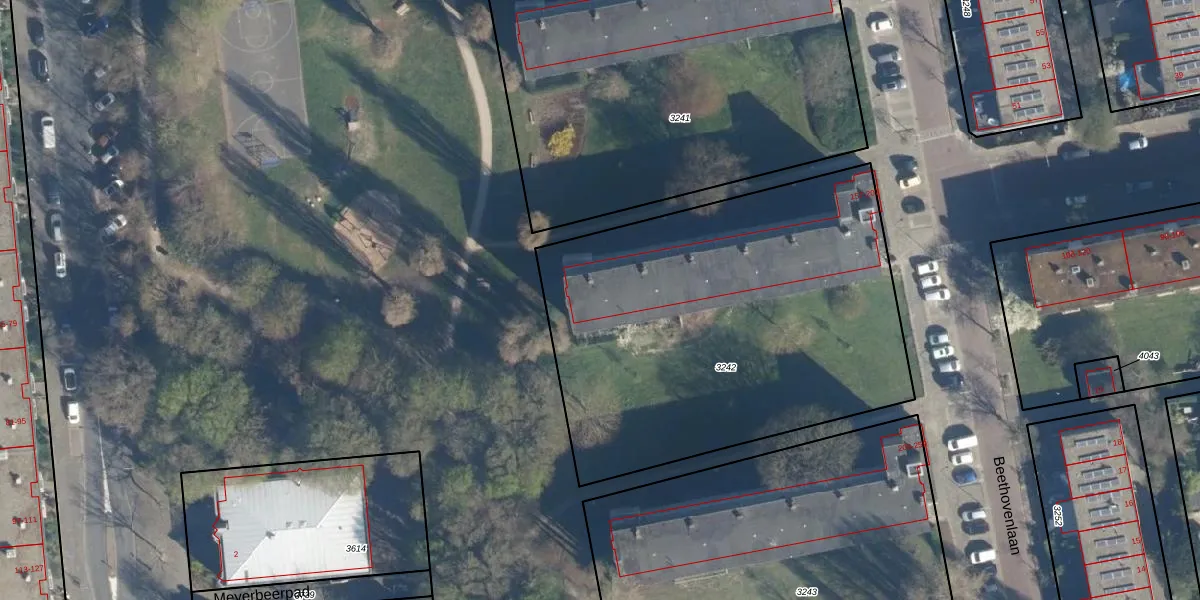 Beethovenlaan 195 is gelegen op kadastraal perceel LDN01O3242. Deze kadastrale aanduiding is uniek en wordt gebruikt door het Kadaster om eigendomsrechten en andere zakelijke rechten vast te leggen. Het perceel maakt onderdeel uit van de kadastrale gemeente Leiden.