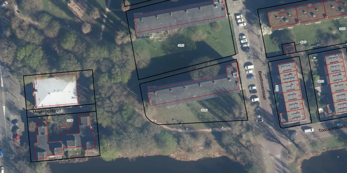 Beethovenlaan 221 is gelegen op kadastraal perceel LDN01O3243. Deze kadastrale aanduiding is uniek en wordt gebruikt door het Kadaster om eigendomsrechten en andere zakelijke rechten vast te leggen. Het perceel maakt onderdeel uit van de kadastrale gemeente Leiden.