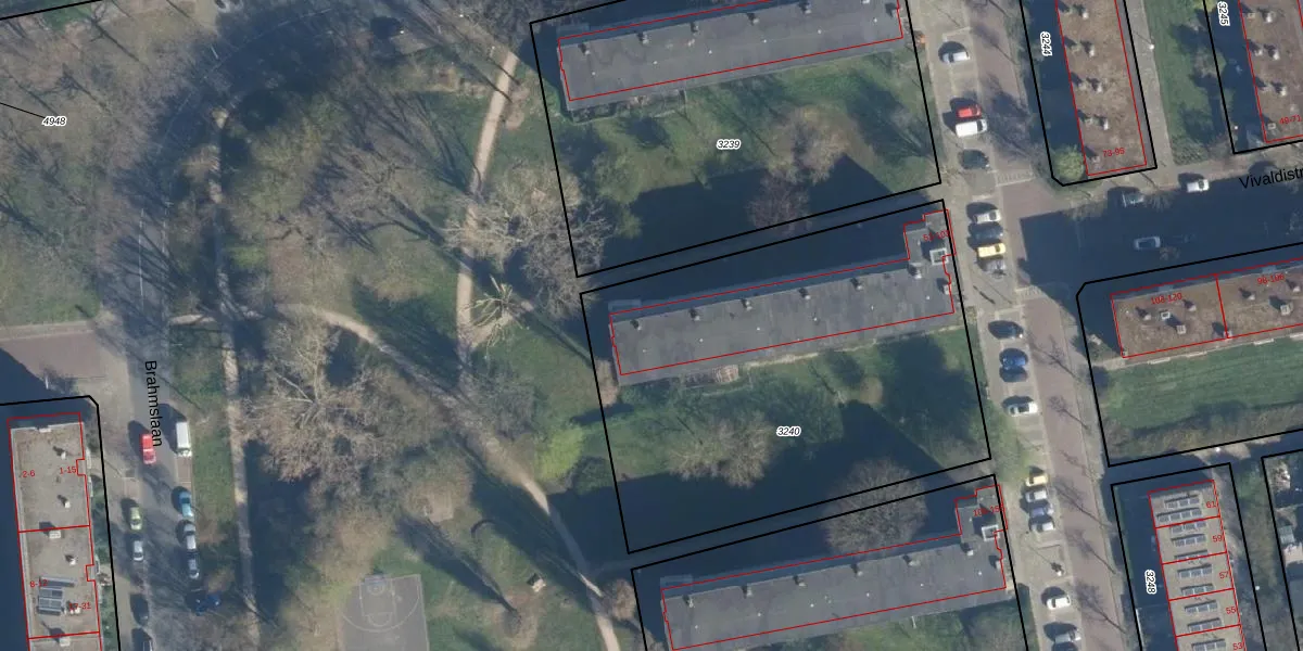 Het perceel waarop het adres ligt is LDN01-O-3240. De afkorting 'LDN01' staat voor kadastrale gemeente Leiden. De gemiddelde perceeloppervlakte in de kadastrale gemeente Leiden is 703,94 m². Dit perceel is met zijn 2330 m² dus groter dan gemiddeld. De grootste perceeloppervlakte in de kadastrale gemeente is 51,8 ha. De kleinste oppervlakte bedraagt 0 m². Op het perceel zijn 26 adressen aanwezig. De laatste wijziging in het de Basisregistratie Kadaster (BRK) was op 07-12-2007.