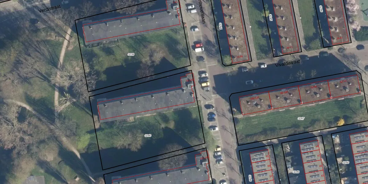 Het perceel waarop Beethovenlaan 69 staat heeft een oppervlakte van 2330 m². Dit is een zeer groot perceel. De perceeloppervlakte wordt geregistreerd door het Kadaster. Gedetailleerde informatie over de maten van dit perceel kunt u vinden in het rapport Kadastrale kaart met maatvoering van Beethovenlaan 69.