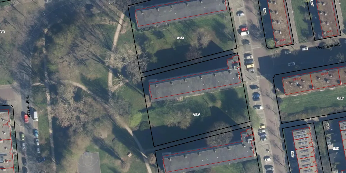 Het perceel waarop het adres ligt is LDN01-O-3240. De afkorting 'LDN01' staat voor kadastrale gemeente Leiden. De gemiddelde perceeloppervlakte in de kadastrale gemeente Leiden is 703,94 m². Dit perceel is met zijn 2330 m² dus groter dan gemiddeld. De grootste perceeloppervlakte in de kadastrale gemeente is 51,8 ha. De kleinste oppervlakte bedraagt 0 m². Op het perceel zijn 26 adressen aanwezig. De huidige grenzen van het perceel zijn digitaal in de Basisregistratie Kadaster (BRK) geregistreerd op 07-12-2007.