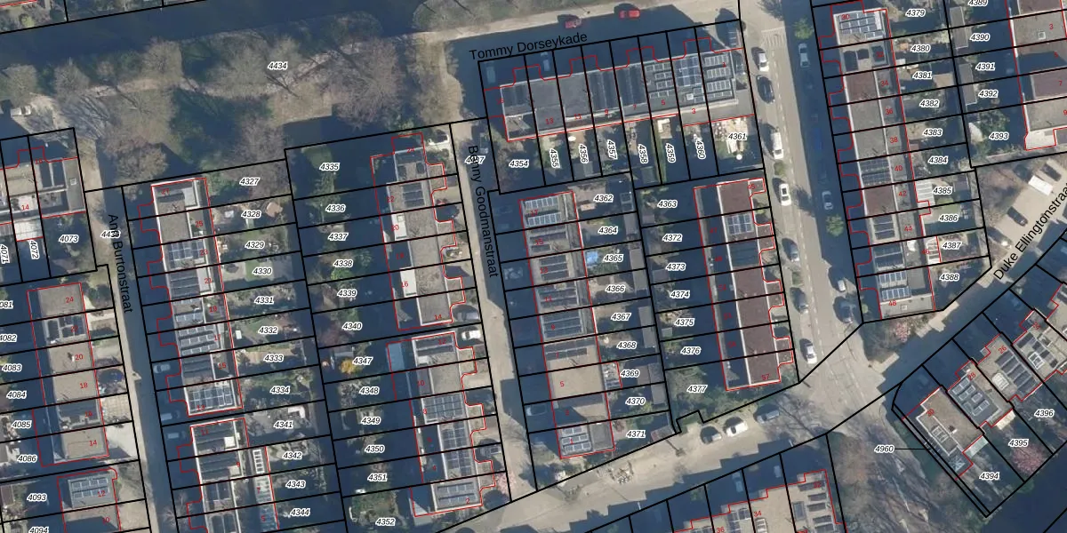 Benny Goodmanstraat 13 is gelegen op kadastraal perceel LDN01O4365. Deze kadastrale aanduiding is uniek en wordt gebruikt door het Kadaster om eigendomsrechten en andere zakelijke rechten vast te leggen. Het perceel maakt onderdeel uit van de kadastrale gemeente Leiden.
