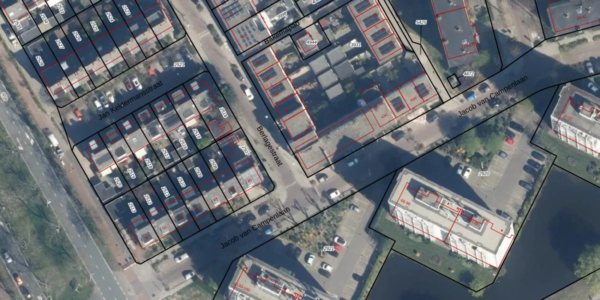 Het perceel waarop Berlagestraat 60 staat heeft een oppervlakte van 2153 m². Dit is een zeer groot perceel. De perceeloppervlakte wordt geregistreerd door het Kadaster. Gedetailleerde informatie over de maten van dit perceel kunt u vinden in het rapport Kadastrale kaart met maatvoering van Berlagestraat 60.