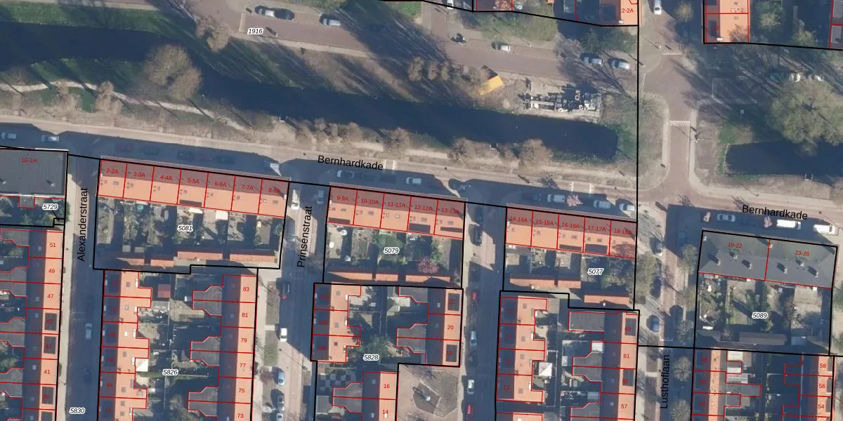 Het perceel waarop Bernhardkade 12-A staat heeft een oppervlakte van 731 m². Dit is een groot perceel. De perceeloppervlakte wordt geregistreerd door het Kadaster. Gedetailleerde informatie over de maten van dit perceel kunt u vinden in het rapport Kadastrale kaart met maatvoering van Bernhardkade 12-A.