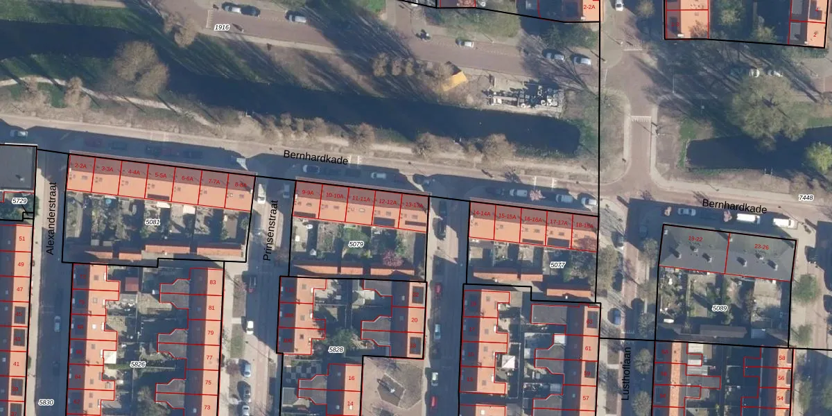 Het perceel waarop Bernhardkade 13-A staat heeft een oppervlakte van 731 m². Dit is een groot perceel. De perceeloppervlakte wordt geregistreerd door het Kadaster. Gedetailleerde informatie over de maten van dit perceel kunt u vinden in het rapport Kadastrale kaart met maatvoering van Bernhardkade 13-A.