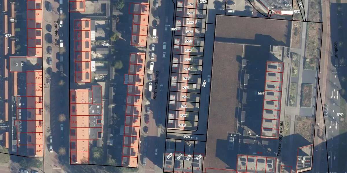 Het perceel waarop Bernhardstraat 11 staat heeft een oppervlakte van 95 m². Dit is een klein perceel. De perceeloppervlakte wordt geregistreerd door het Kadaster. Gedetailleerde informatie over de maten van dit perceel kunt u vinden in het rapport Kadastrale kaart met maatvoering van Bernhardstraat 11.