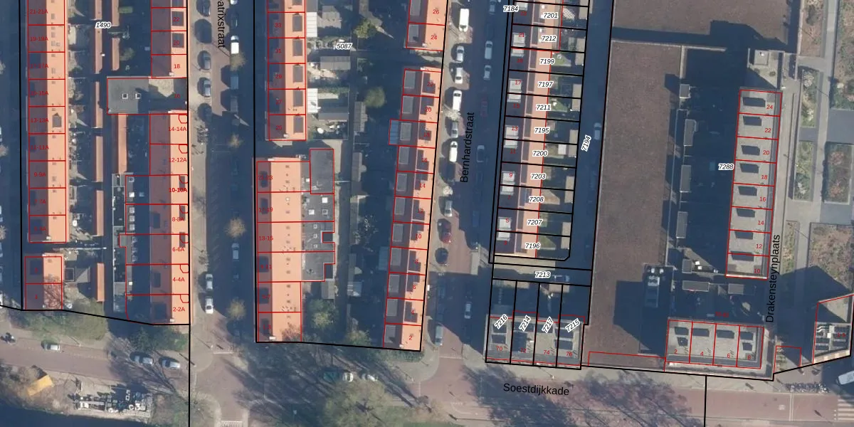 Het perceel waarop Bernhardstraat 12 staat heeft een oppervlakte van 5675 m². Dit is een zeer groot perceel. De perceeloppervlakte wordt geregistreerd door het Kadaster. Gedetailleerde informatie over de maten van dit perceel kunt u vinden in het rapport Kadastrale kaart met maatvoering van Bernhardstraat 12.
