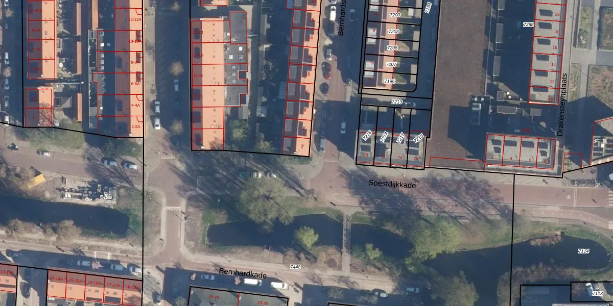 Het perceel waarop Bernhardstraat 2 staat heeft een oppervlakte van 5675 m². Dit is een zeer groot perceel. De perceeloppervlakte wordt geregistreerd door het Kadaster. Gedetailleerde informatie over de maten van dit perceel kunt u vinden in het rapport Kadastrale kaart met maatvoering van Bernhardstraat 2.